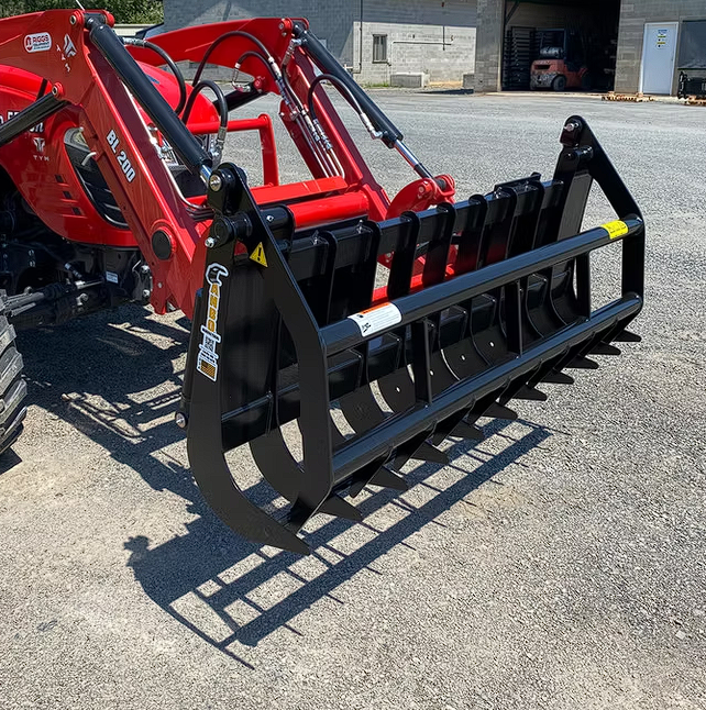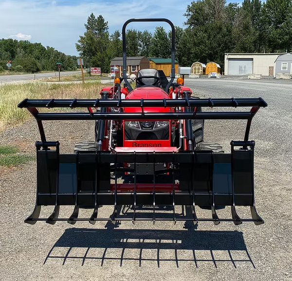 The ANBO GR45 Grapple Rake is purpose-built for compact tractors up to 45 HP, offering professional-grade performance in a smaller, efficient design. Its clamshell-style rake makes clearing, digging, and loading debris easy, while maintaining superior control. Crafted from American made AR400F steel, this grapple combines lightweight agility with serious strength. Greaseable pivot points, and protected hose routing, ensure lasting reliability. Ideal for brush clearing, rock removal, and landscaping cleanup, the GR45 is proudly made in the USA.