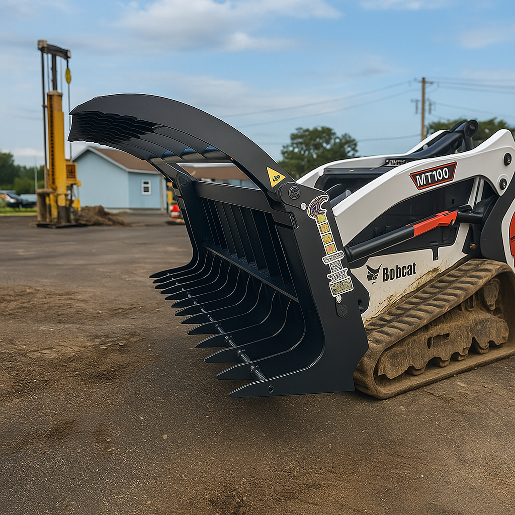 The ANBO Grapple Rake is engineered for mini skid steers under 25 horsepower—strong, lightweight, and built to last. Made from AR400F steel that’s five times stronger than grade 36, this attachment delivers powerful performance without adding unnecessary weight. Its rounded tines, clamshell design, and reinforced rake bar make it ideal for raking, digging, and moving brush, rocks, and debris. Perfect for property maintenance and light clearing, every grapple is proudly made in the USA, with greaseable pivot points, secure hose routing, and industry-leading warranty coverage for years of reliable use.