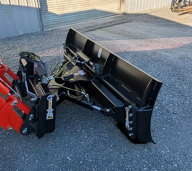 - Full 6-way hydraulic control: angle, tilt, and roll for precise grading.