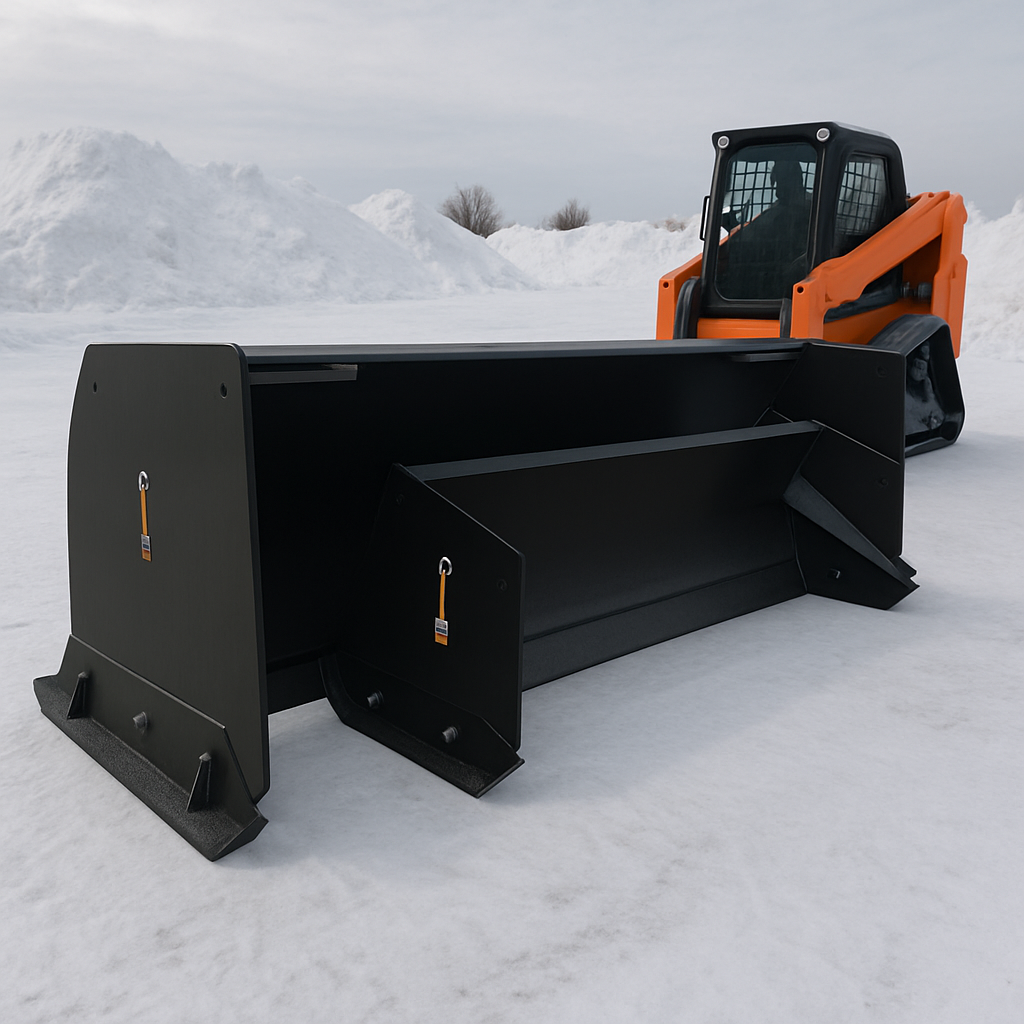 The ANBO Manufacturing 150 HP Skid Steer Snow Pusher is engineered for fast, efficient snow removal in demanding winter conditions. Built in the USA with high-strength American steel, this skid steer snow pusher delivers exceptional durability and performance on commercial, agricultural, and municipal job sites. Its straight-push design clears large areas quickly, while reinforced box ends, adjustable skid shoes, and a replaceable curved cutting edge ensure long-term reliability. Compatible with nearly any mount and available with optional rubber edges or bucket-mount brackets, this ANBO skid steer snow pusher is built to keep you moving all winter long.