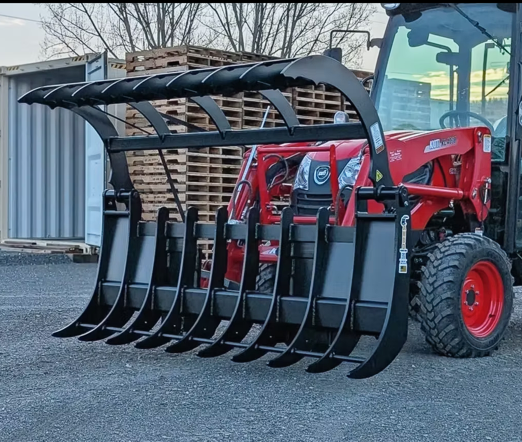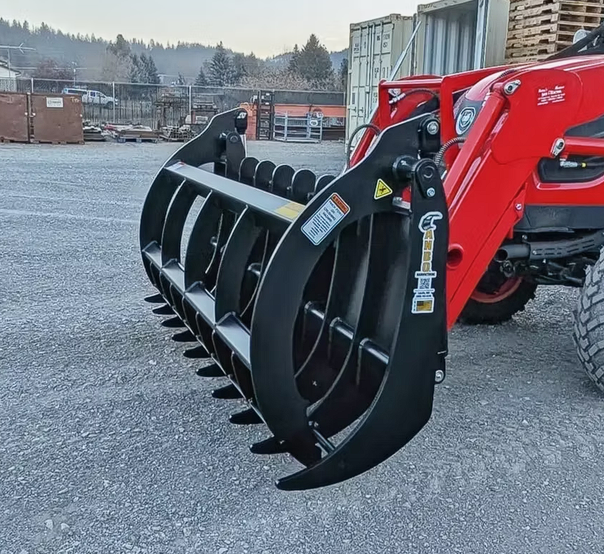 The ANBO GR75 Grapple Rake is engineered for tractors up to 75 horsepower, offering exceptional strength, control, and versatility. Its clamshell-style rake design allows easy raking, digging, and debris handling for demanding jobs. Built in the USA from AR400F steel, it’s designed for long-term performance without compromising lift capacity. With greaseable pivot points, secure hose routing, and heavy-duty cylinders, the GR75 delivers reliable power for clearing brush, moving rocks, and cleaning up work sites.