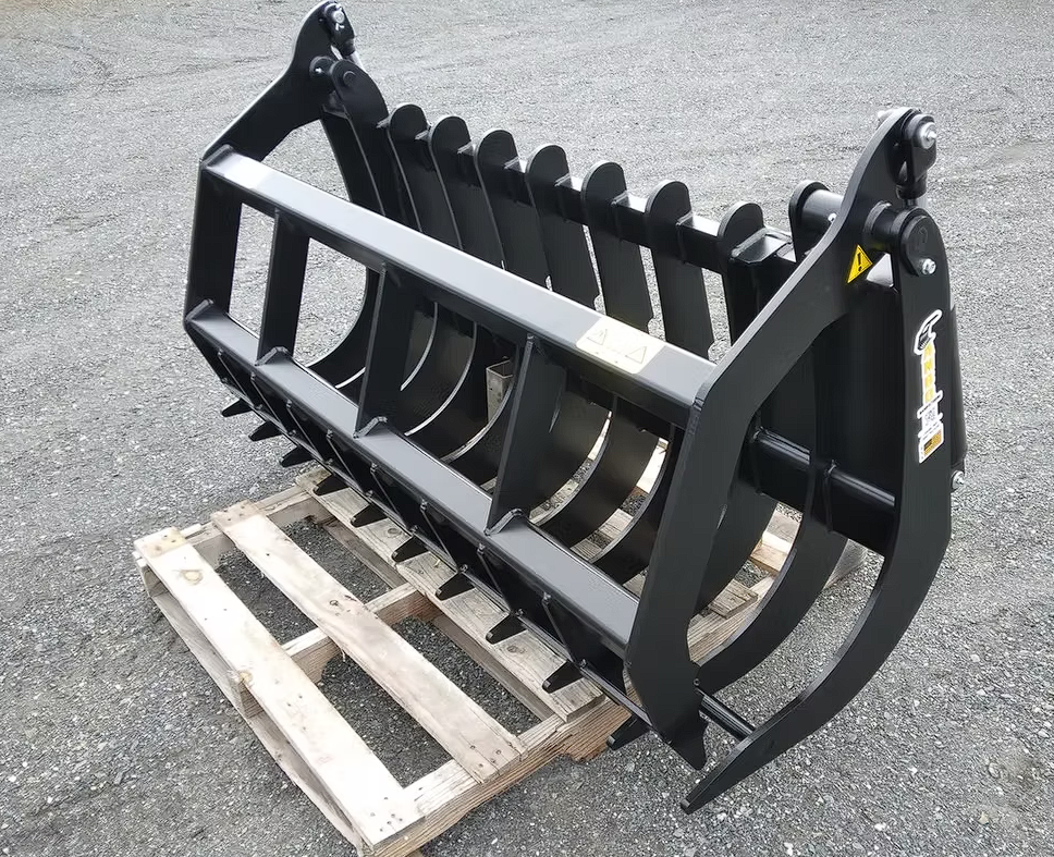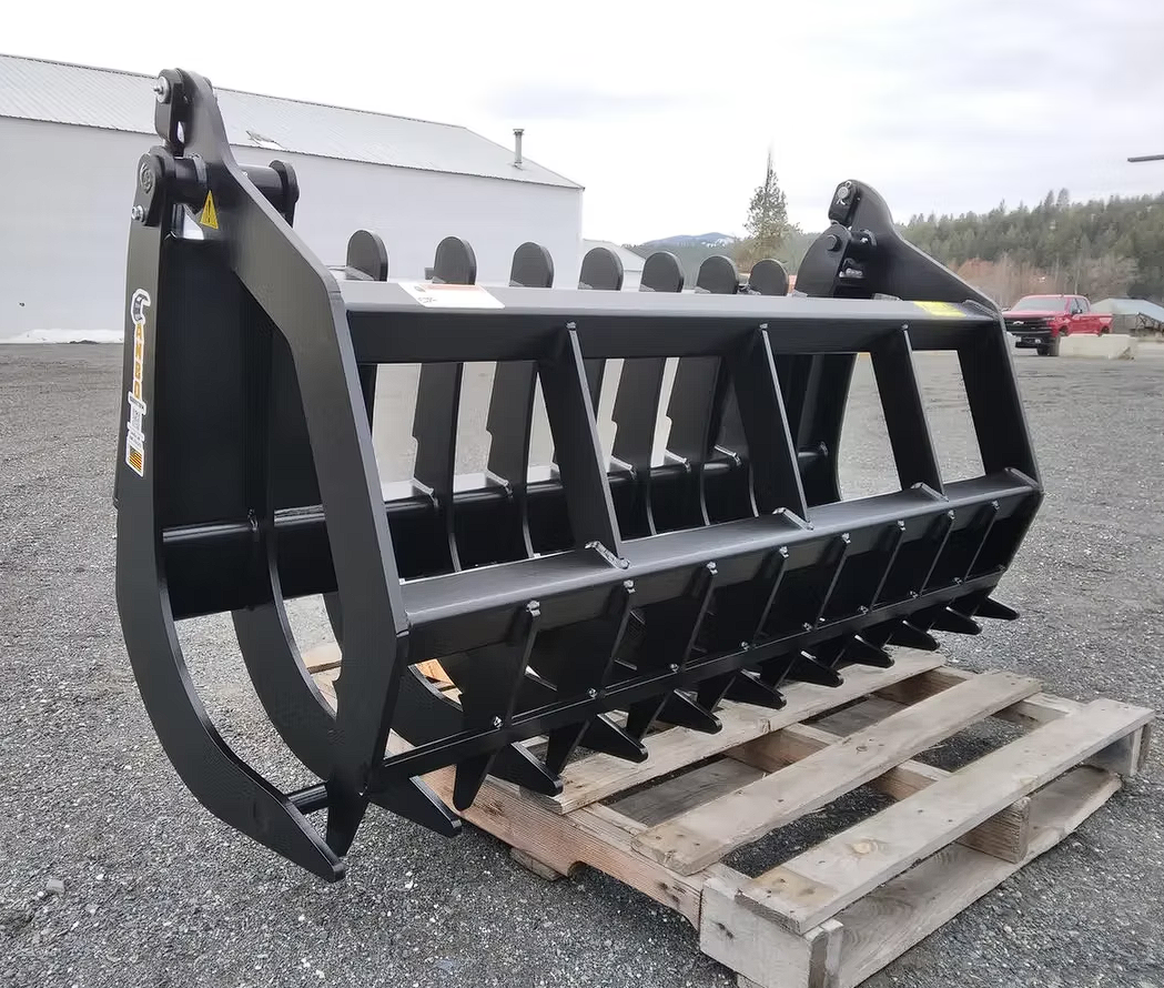 The ANBO GR75HC High Capacity Grapple Rake handles larger loads with longer tines, a wider opening, and AR400F steel construction. Designed for skid steers up to 75 HP, it excels in land clearing, rock work, and debris removal. Built in the USA for strength, precision, and lifetime durability.