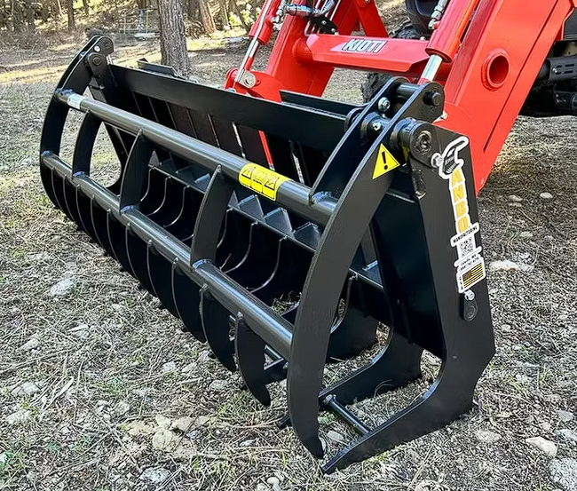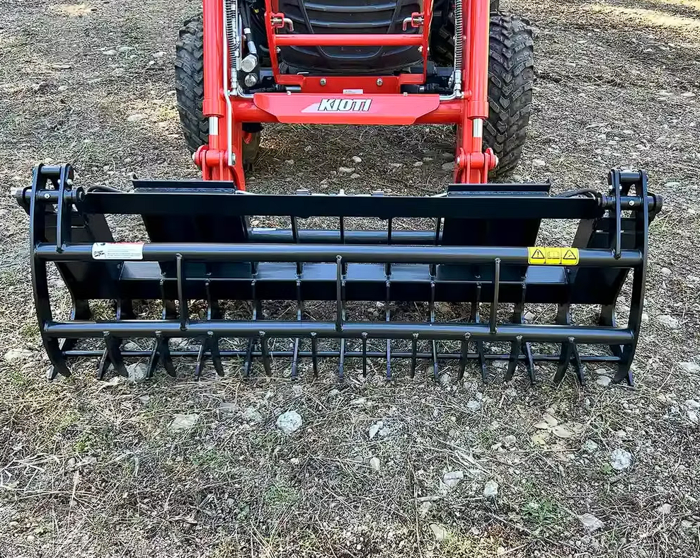 The ANBO Utility Sub-Compact Grapple Rake is built for compact tractors and small machines under 30 horsepower, offering powerful performance in a lightweight design. Its flat tines and reinforced rake bar allow you to clear brush, clean up property debris, and sort rocks with ease—without worrying about bending or damage. Designed and built in the USA from high-quality American steel, this versatile grapple increases productivity for landscaping, farm, or residential cleanup. With greaseable pivot points, securely routed hoses, and a long-lasting powder coat finish, this attachment is built to perform for years to come.