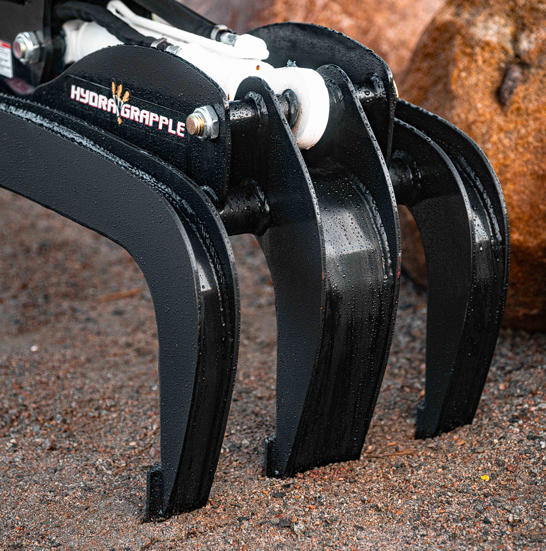 - Lightweight clamshell Hydra Grapple for 2.5–3.5 ton mini excavators