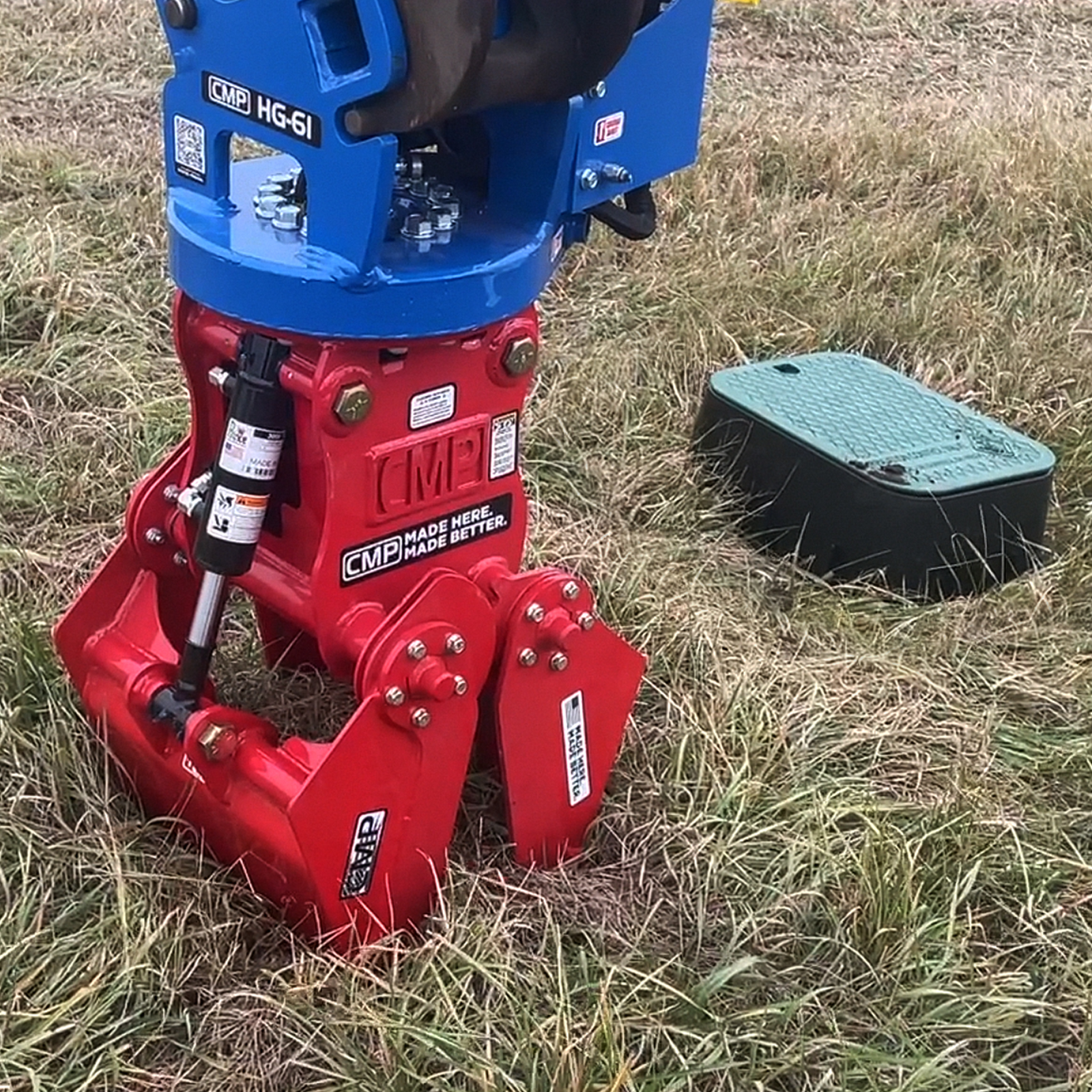 A 360° rotating irrigation grapple designed to remove perfect irrigation box plugs in seconds—eliminating hand digging, reducing crew size, and transforming large-scale sprinkler installations.