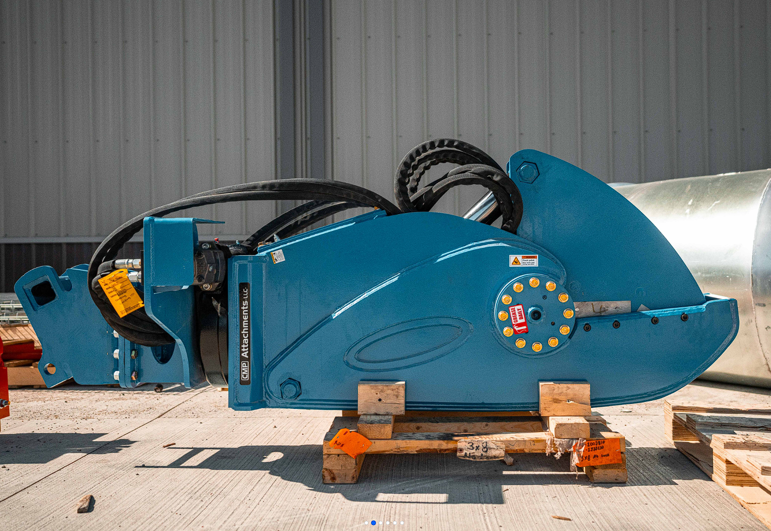 The CMP Metal & Wire Shear is engineered for demolition, scrap yards, and metal processing operations, delivering unmatched cutting power and precision. Its 6″ bore cylinder handles tough materials, while dual 7″ moving blades and a stationary 13″ blade ensure clean cuts. With zero-gap closure, even thin metal is sheared efficiently. The shear features 360° worm drive rotation, 4500 PSI max, and proportional cylinder control for fine-tuned operation. Designed to fit up to 80-class machines, it excels at cutting rebar, wire, cables, sheet metal, and small beams, making demolition and scrap processing faster, safer, and more precise. Durable construction with powder-coated finish ensures long-lasting reliability.