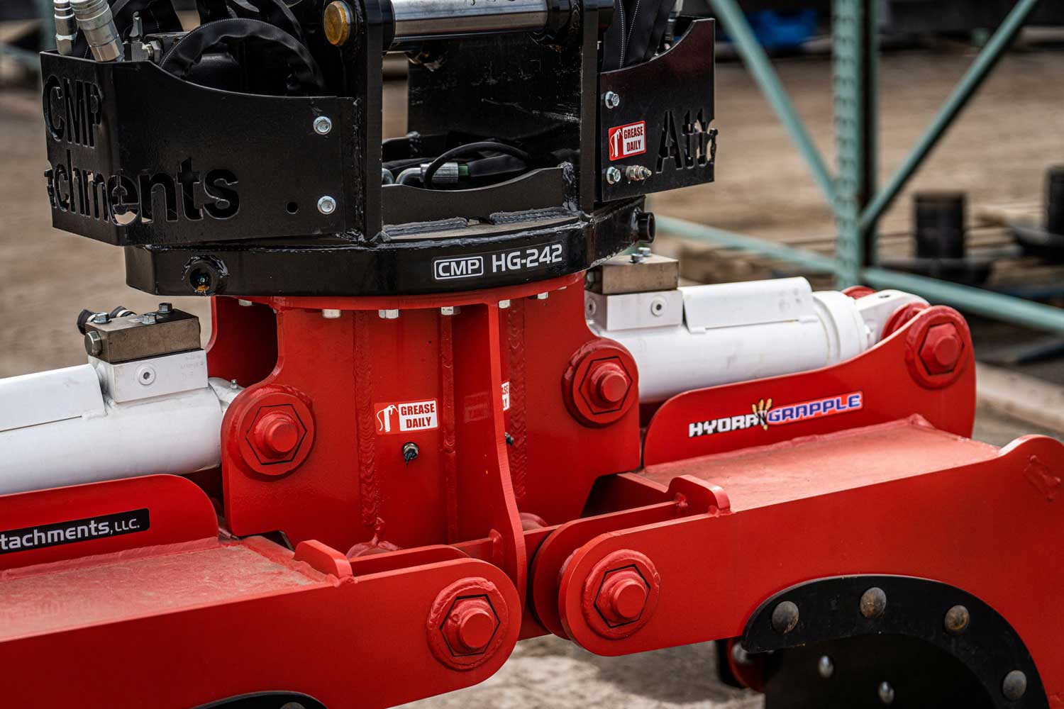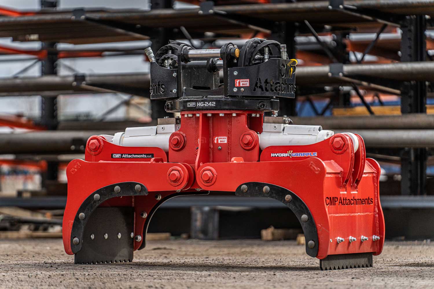 The CMP HG 242 Series Hydra Grapple features a 17-inch slewing bearing and fits machines like the Kubota KX080, CAT 308–310, and Bobcat E88. With dual-motor rotation, dual cylinders, replaceable wear plates, bolt-on edge options, and an optional diverter valve, it delivers strong, adaptable performance.