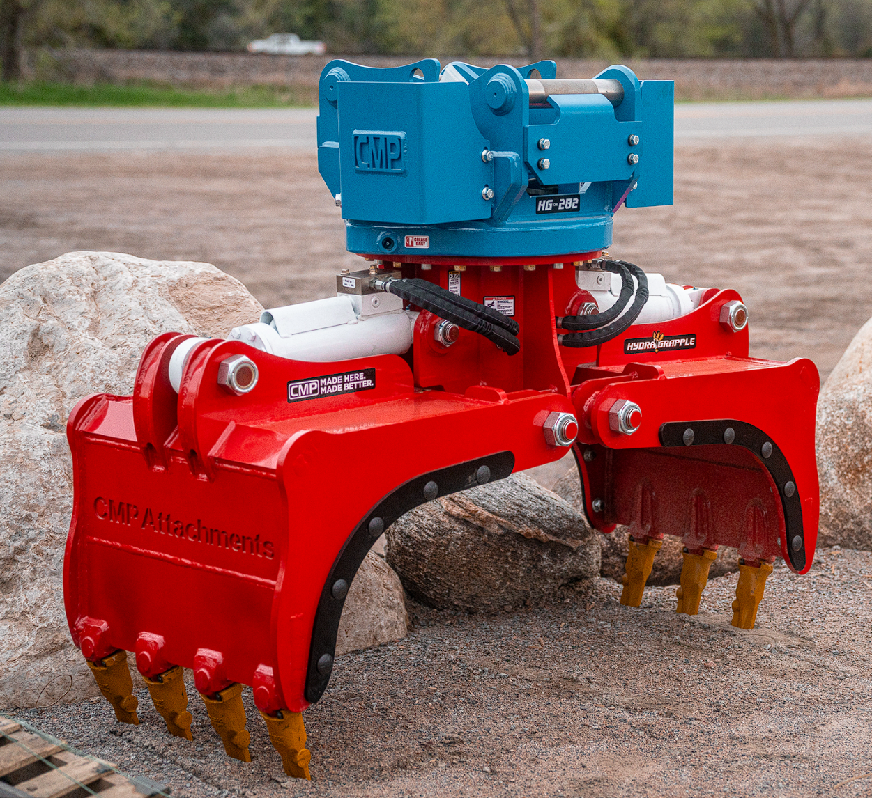 The CMP HG 282 Series Hydra Grapple is built for full-size excavators such as the Deere 130P, CAT 313, Sany 135C, and Komatsu PC130. With dual-motor rotation, lock-valve cylinders, replaceable plates, hardened teeth, and an optional diverter valve, it delivers strength, precision, and long-term reliability.