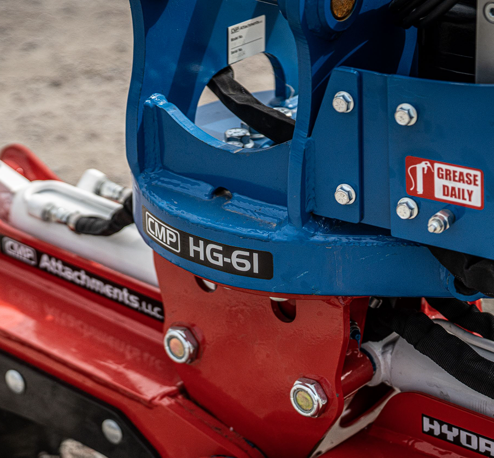 The CMP HG 61 Hydra Grapple is the largest single-motor model, built for mini excavators like the KX033, 303, and E35. With a high-torque rotational motor, dual cylinders, replaceable side plates, and multiple bolt-on edge options, it delivers powerful versatility. Optional diverter valve eliminates secondary auxiliary hydraulic plumbing.