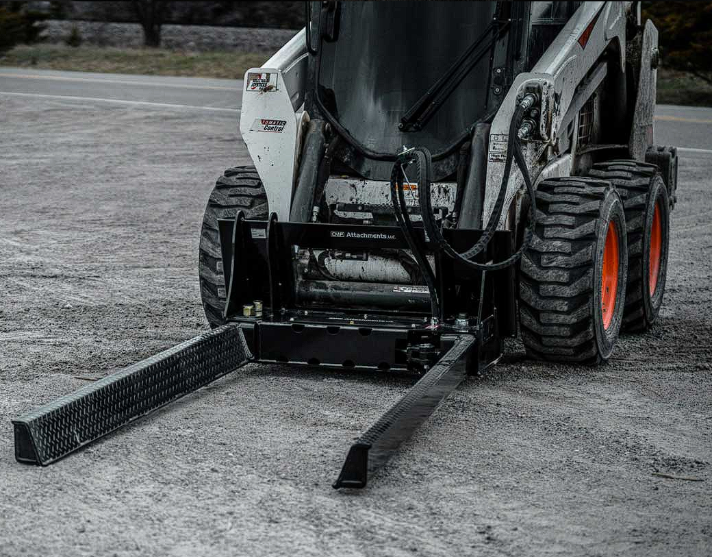 CMP Skid Steer Tree Forks move B&B tree balls, boulders, nursery stock, and more with precision. Featuring 60” arms, diamond plate tines, and a 2" bore cylinder for tight clamping, zero-gap tine tips, and extreme-duty steel construction with black powder coat, they’re perfect for nurseries, tree farms, and landscaping.