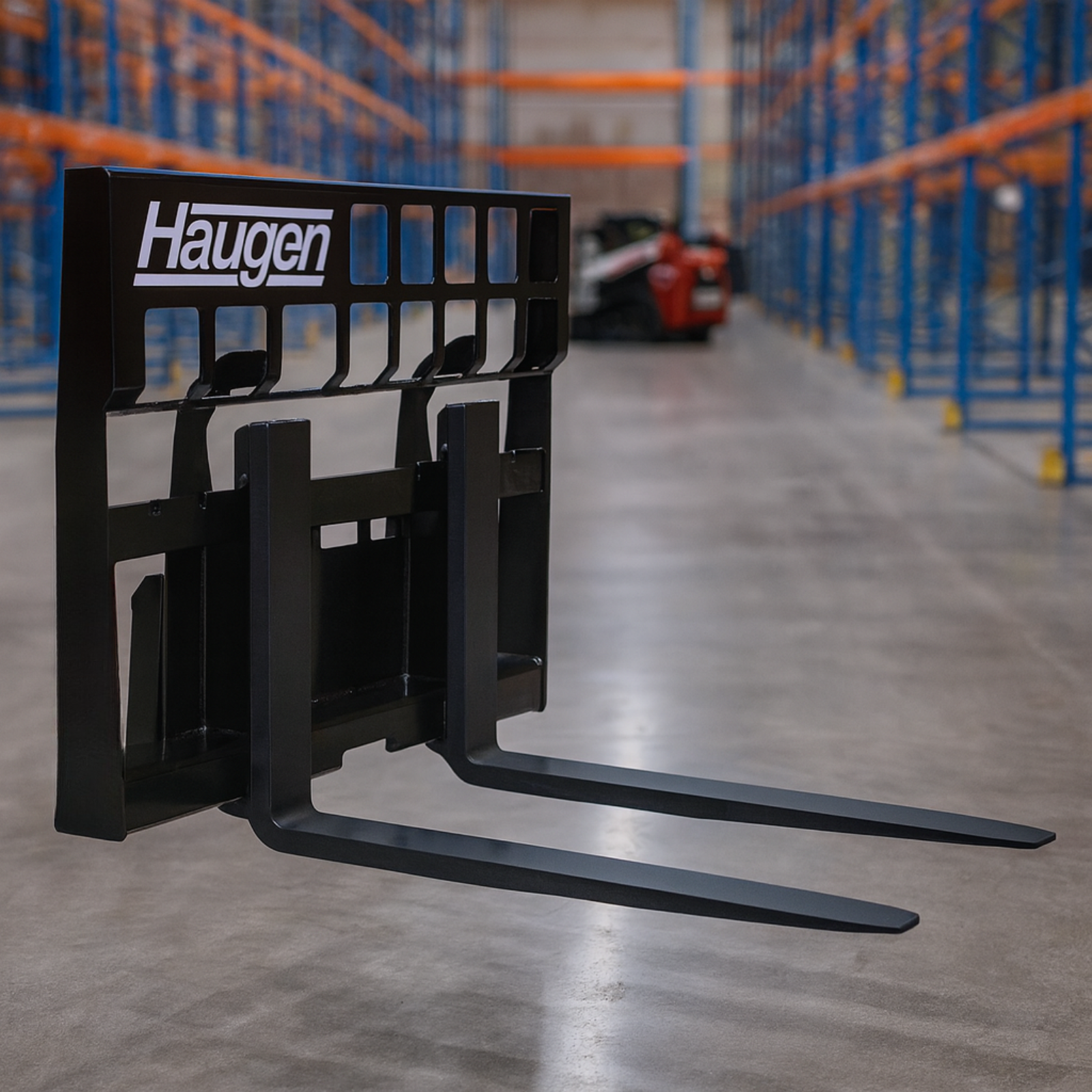 The Haugen Mini Skid Steer Pallet Forks provide strong, reliable lifting performance for compact equipment. With 2,200 lb capacity, 36" or 42" tines, and a durable rail-style frame, these forks are perfect for landscaping, construction, and farm work. Compatible with most mini skid steers for easy, versatile material handling.