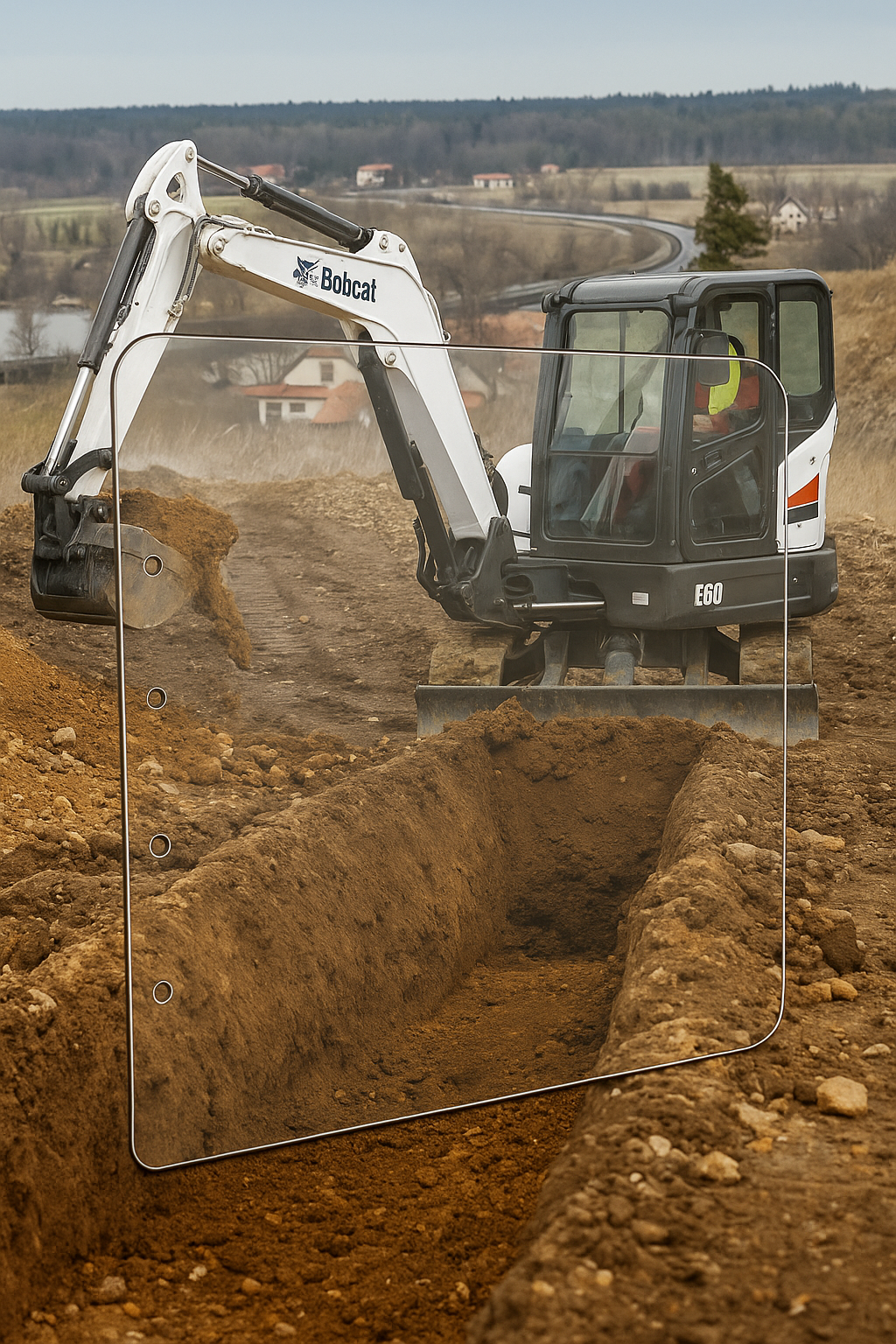 Enhance operator safety and comfort with the Bobcat Polycarbonate Replacement Door, designed to withstand the toughest job site conditions fit for Bobcat E60/E85/E88 excavators. Made from impact-resistant polycarbonate, this OEM replacement door is 260 times stronger than standard glass while being half the weight, providing unmatched durability and protection from flying debris, rocks, and branches. Designed for seamless installation, this 1/2" thick polycarbonate windshield fits directly into the existing frame using factory mounting holes and seals—no extra hardware required. The Supercoat™ technology on both sides enhances abrasion resistance, ensuring long-lasting clarity, reduced glare, and protection against scratches. Beyond protection, this replacement door also reduces noise, improves insulation, and enhances light transmittance, keeping your cab cooler in summer and warmer in winter for increased efficiency and operator comfort. Ideal for brush clearing, mulching, and mowing operations, the Bobcat Polycarbonate Door is a must-have upgrade for operators seeking superior durability, visibility, and efficiency. Upgrade today and keep your crew protected in even the harshest environments. Contact our sales team for more information!