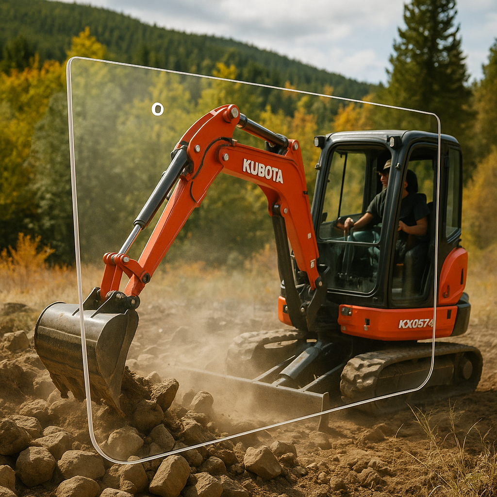Replaces Kubota Excavator Windshield Glass #RD579-46440 (Lower, curved)