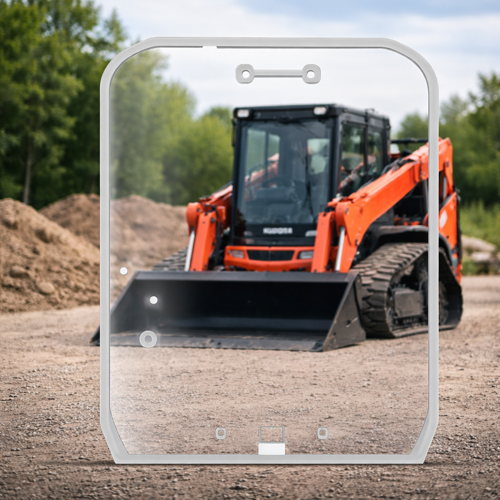 The Kubota SVL-3 Polycarbonate Replacement Door offers 260x the strength of glass at half the weight, providing superior protection against flying debris, rocks, and branches. This 1/2" thick, impact-resistant door seamlessly replaces OEM glass using factory mounting holes and seals—no extra hardware needed. Featuring Supercoat™ technology for abrasion resistance and long-lasting clarity, it also reduces noise, improves insulation, and enhances light transmittance for a more comfortable cab environment. Ideal for brush clearing, mulching, and mowing, this upgrade ensures maximum durability, visibility, and efficiency in tough job site conditions. *Note: This model only works for Kubota SVL-3 Series excavators that were purchased AFTER 2023. We carry options for SVL-3 Series machines purchased BEFORE 2023 too!