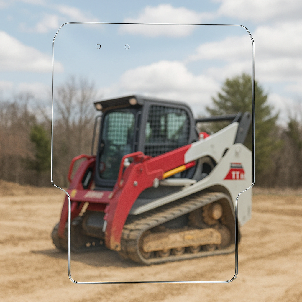 Enhance operator safety and comfort with the Takeuchi TL Polycarbonate Replacement Door, designed to withstand the toughest job site conditions. Made from impact-resistant polycarbonate, this OEM replacement door is 260 times stronger than standard glass while being half the weight, providing unmatched durability and protection from flying debris, rocks, and branches. Designed for seamless installation, this 1/2" thick polycarbonate windshield fits directly into the existing frame using factory mounting holes and seals—no extra hardware required. The Supercoat™ technology on both sides enhances abrasion resistance, ensuring long-lasting clarity, reduced glare, and protection against scratches. Beyond protection, this replacement door also reduces noise, improves insulation, and enhances light transmittance, keeping your cab cooler in summer and warmer in winter for increased efficiency and operator comfort. Ideal for brush clearing, mulching, and mowing operations, the Takeuchi TL Polycarbonate Door is a must-have upgrade for operators seeking superior durability, visibility, and efficiency. Upgrade today and keep your crew protected in even the harshest environments. Contact our sales team for more information!