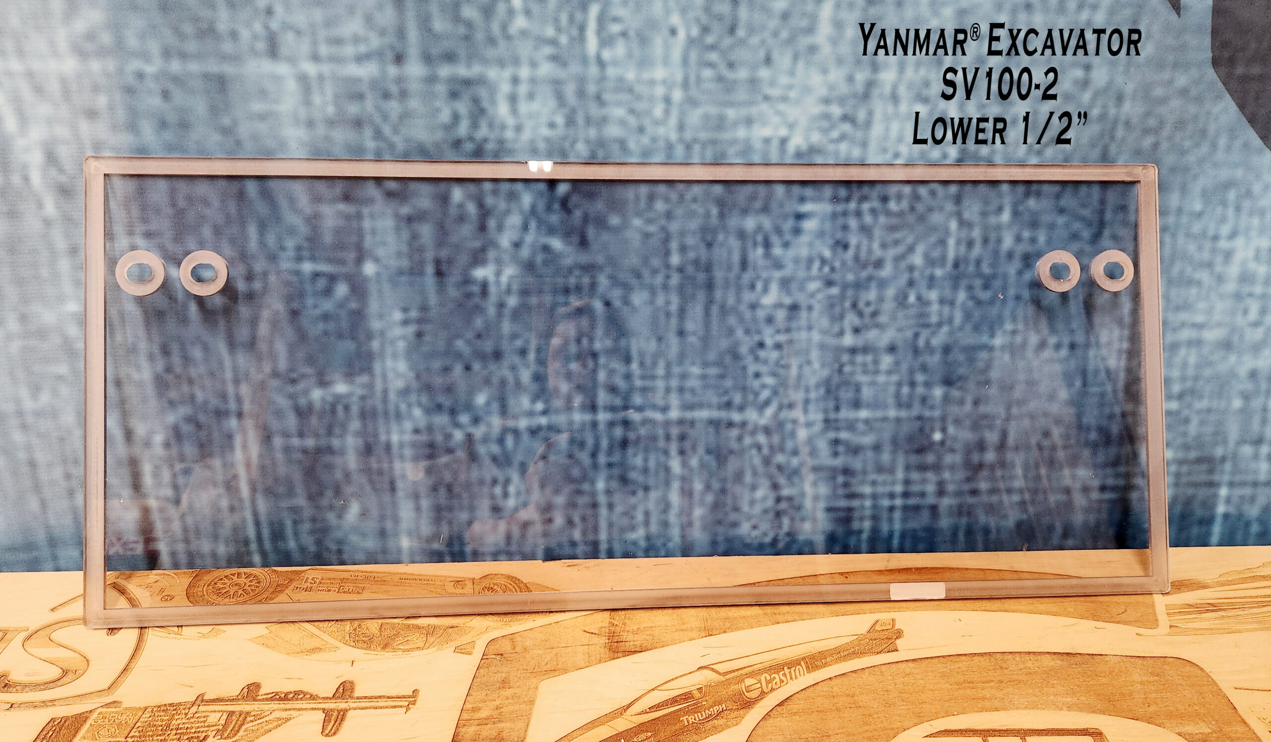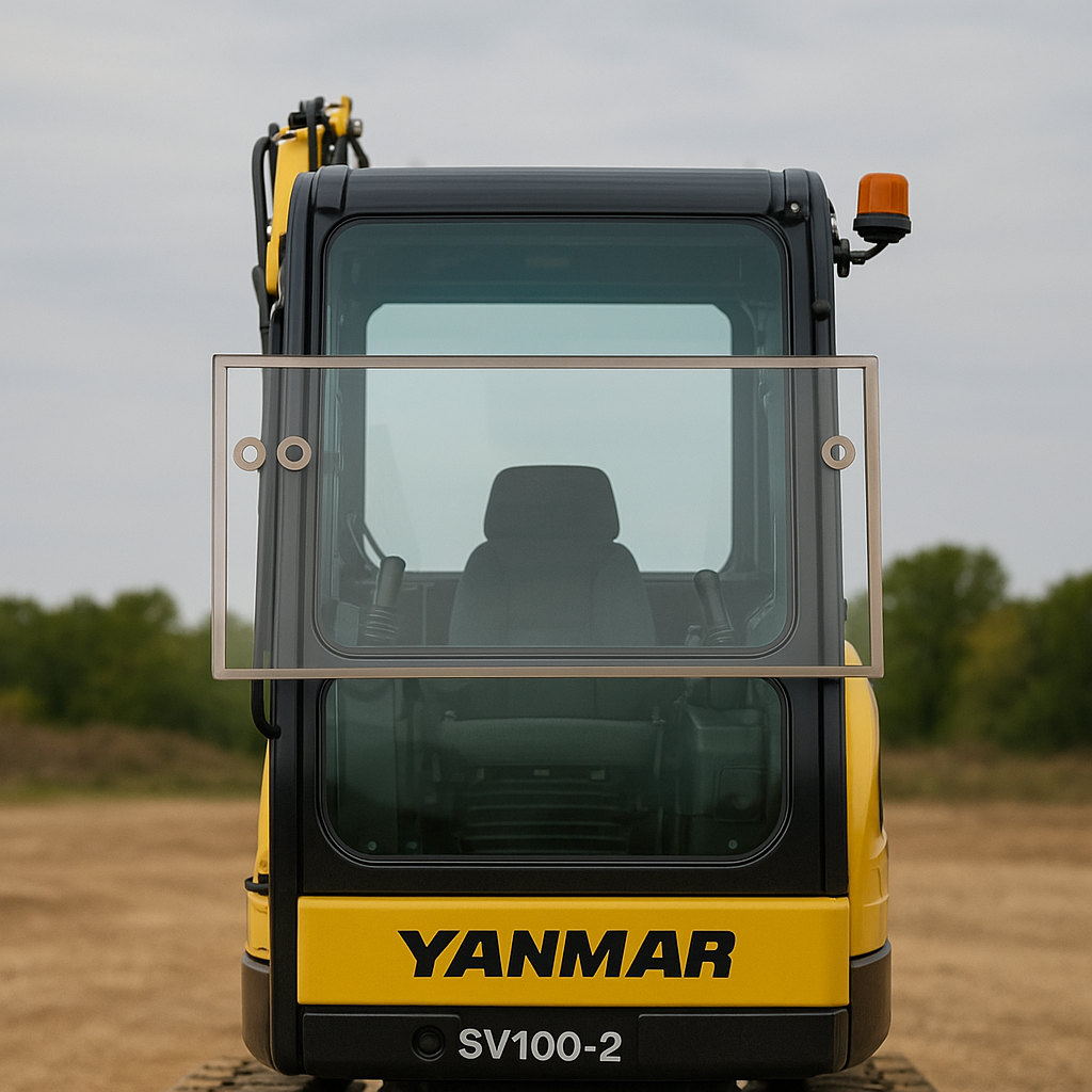 Enhance operator safety and comfort with the Shields Yanmar SV100-2 Polycarbonate Replacement Door, designed to withstand the toughest job site conditions. Made from impact-resistant polycarbonate, this OEM replacement door is 260 times stronger than standard glass while being half the weight, providing unmatched durability and protection from flying debris, rocks, and branches. Designed for seamless installation, this 1/2" thick polycarbonate windshield fits directly into the existing frame using factory mounting holes and seals—no extra hardware required. The Supercoat™ technology on both sides enhances abrasion resistance, ensuring long-lasting clarity, reduced glare, and protection against scratches. Beyond protection, this replacement door also reduces noise, improves insulation, and enhances light transmittance, keeping your cab cooler in summer and warmer in winter for increased efficiency and operator comfort. This is the lower window for Yanmar model number SV100-2.