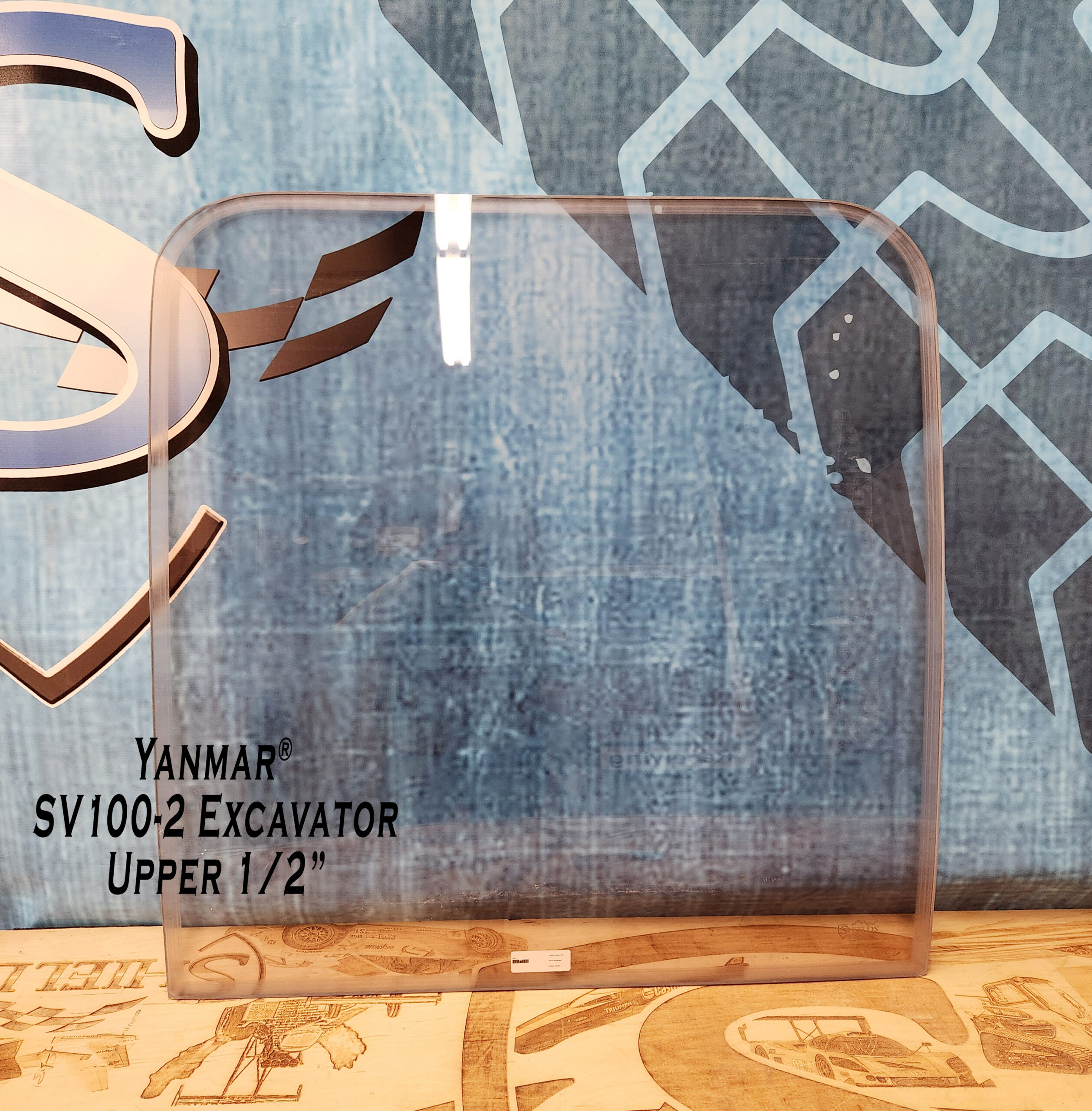 Enhance operator safety and comfort with the Shields Yanmar SV100-2 Polycarbonate Replacement Door, designed to withstand the toughest job site conditions. Made from impact-resistant polycarbonate, this OEM replacement door is 260 times stronger than standard glass while being half the weight, providing unmatched durability and protection from flying debris, rocks, and branches. Designed for seamless installation, this 1/2" thick polycarbonate windshield fits directly into the existing frame using factory mounting holes and seals—no extra hardware required. The Supercoat™ technology on both sides enhances abrasion resistance, ensuring long-lasting clarity, reduced glare, and protection against scratches. Beyond protection, this replacement door also reduces noise, improves insulation, and enhances light transmittance, keeping your cab cooler in summer and warmer in winter for increased efficiency and operator comfort. This is the upper window for Yanmar model number SV100-2.