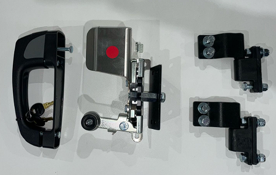• Complete retrofit kit with no drilling required. Includes: Handle, Locking Latch/Keys, Hinges, Weather Seal Gasket, & All Nuts, Bolts, and Washers.